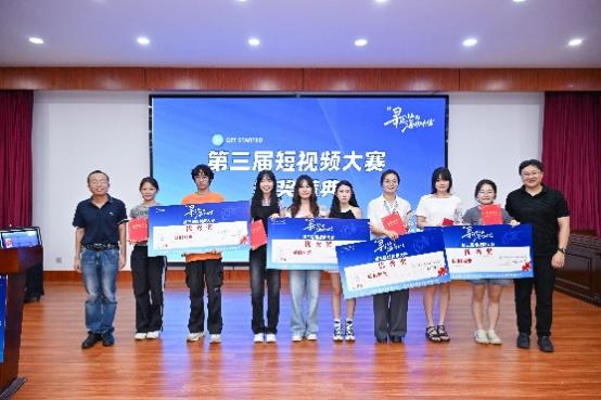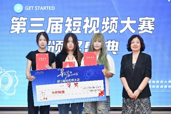 刘海波为获得一等奖(短视频类)的同学颁奖