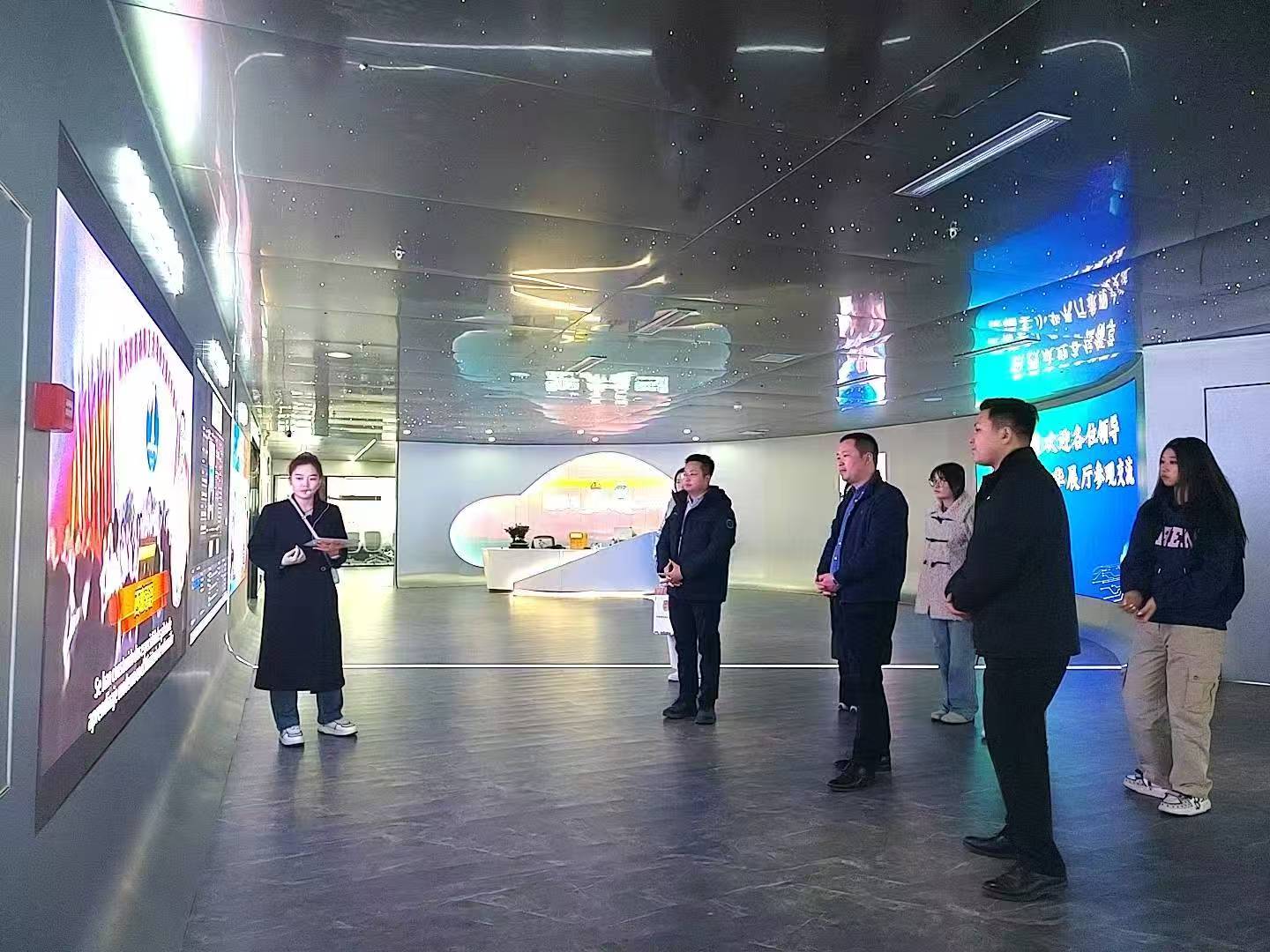 刘海波一行先后参观了公司数字人研发中心、内容制作车间及办公区域。黎云华详细介绍了公司在数字人技术研发、应用场景拓展等方面的核心优势,通过现场演示展示了数字人在传媒传播、企业服务、政务对接等领域的创新应用成果,让师生们直观感受了数字经济时代下行业发展的前沿动态与技术魅力。