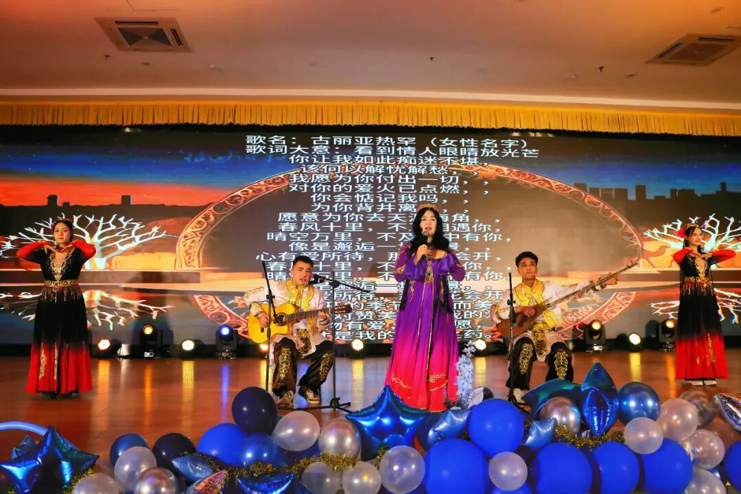 都塔尔弹唱《新疆民歌》奏响浓郁的民族风情,独特的乐器与动人腔调,让观众领略到多元文化的魅力;综合相声《班长的心事》通过活灵活现的表演,将校园趣事演绎得绘声绘色;舞蹈串烧《青春舞步》旋律轻快,把青春里的小确幸娓娓道来;师生歌舞《红日》更是将全场氛围推向顶点——团委老师与学生会骨干同台演绎,以师生同心的画面生动诠释了betvictor伟德