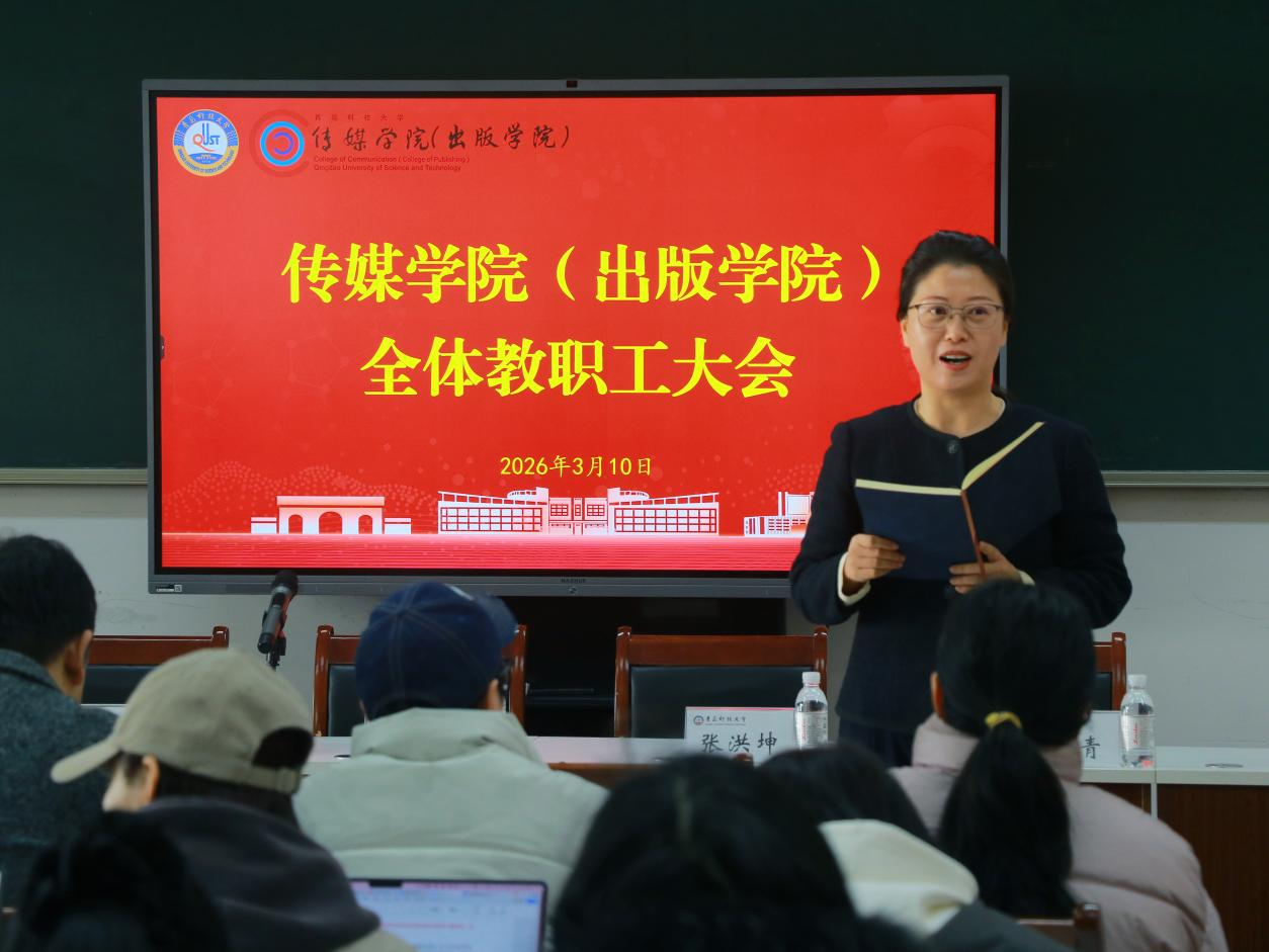 2026年重点发展方向进行部署。她指出,要以交叉学科思维推动传媒学科融合发展,充分发挥中英动画工作坊等国际交流平台的辐射效应,进一步夯实专业特色与办学优势。要持续完善科研管理制度,优化激励机制,鼓励教师主动作为、积极申报国家社科基金、艺术基金等各类高层次项目,力争在标志性科研成果上实现新突破,以科研创新全面赋能传媒学科建设与人才培养。