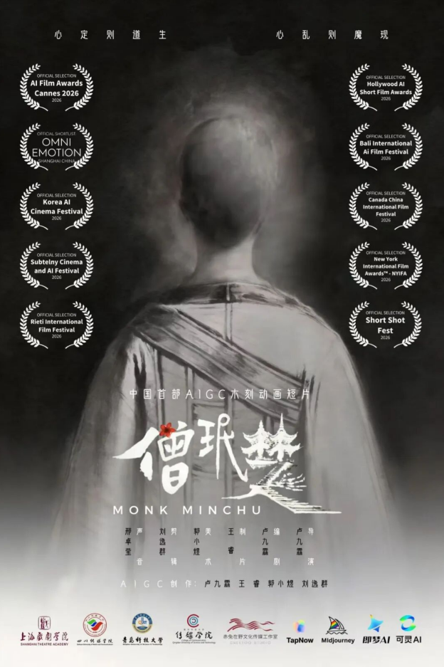 师生团队创作的国内首部AIGC木刻风格动画短片《僧珉楚》,继入围戛纳人工智能电影奖后,再获国际权威影展肯定,成功入围OMNI国际AI电影节。