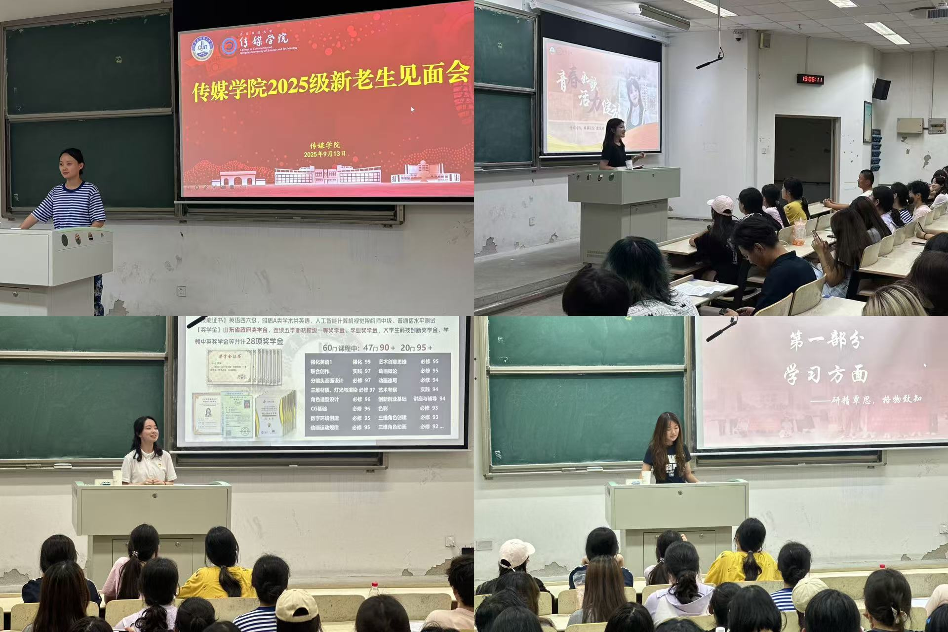 三位高年级优秀学生代表分别从专业学习、学科竞赛、社会实践和学生工作等方面分享了自己的成长经历与心得体会。24级优秀班助代表也结合自身经验为新生答疑解惑,现场互动频繁、气氛热烈,充分展现了“青科传媒人”传帮带的优良传统和团结向上的精神风貌。