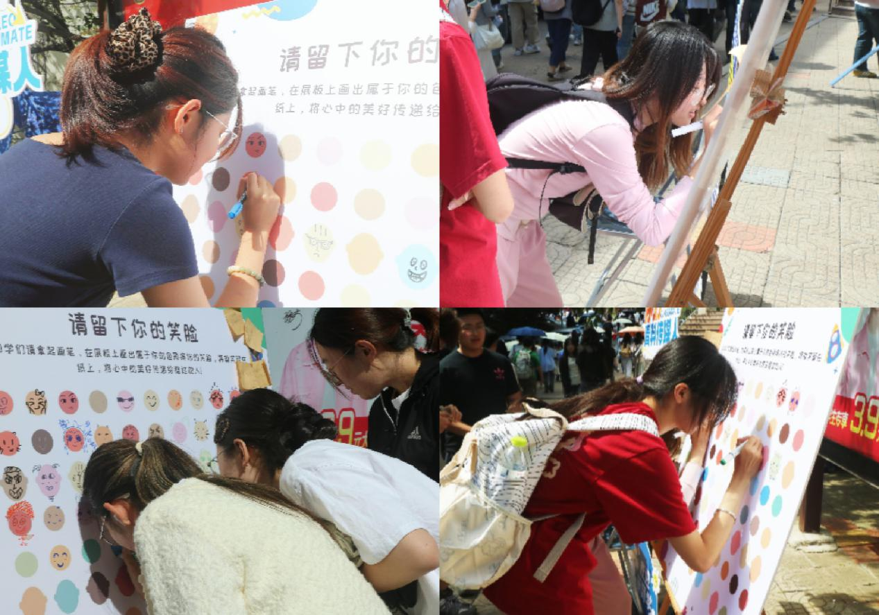 院平台开展“定格温暖,传递治愈”主题心理互动活动。同学们手持彩笔,在卡片上勾勒出各具特色的笑脸——有的灵动活泼,有的温柔治愈,整面墙的笑脸与寄语汇成一股暖流,为来往的师生带来深深的心灵慰藉。