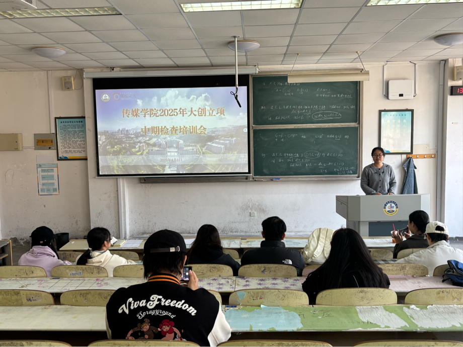 本次培训会邀请两位2024年大创项目国家级立项并顺利结项的负责人围绕“中期检查”与“结项要求”进行专题分享。会上,编辑232冉丹凝同学以“中期检查全流程梳理”为主题展开讲解。她从时间节点、材料提交、评审形式、汇报要点等方面,系统梳理了2025年大创项目中期检查的完整流程。广告232耿露颖同学聚焦“中期检查细节与结项筹备”进行分享。她深入讲解了中期检查中的细节要点,包括成果呈现的规范性、数据来源的可靠性等。她结合自身从中期到结项的全过程,分享了如何在中检阶段就为结项做好准备,包括提前梳理成果清单作品创作的时间表、规范留存过程性材料等实用经验。