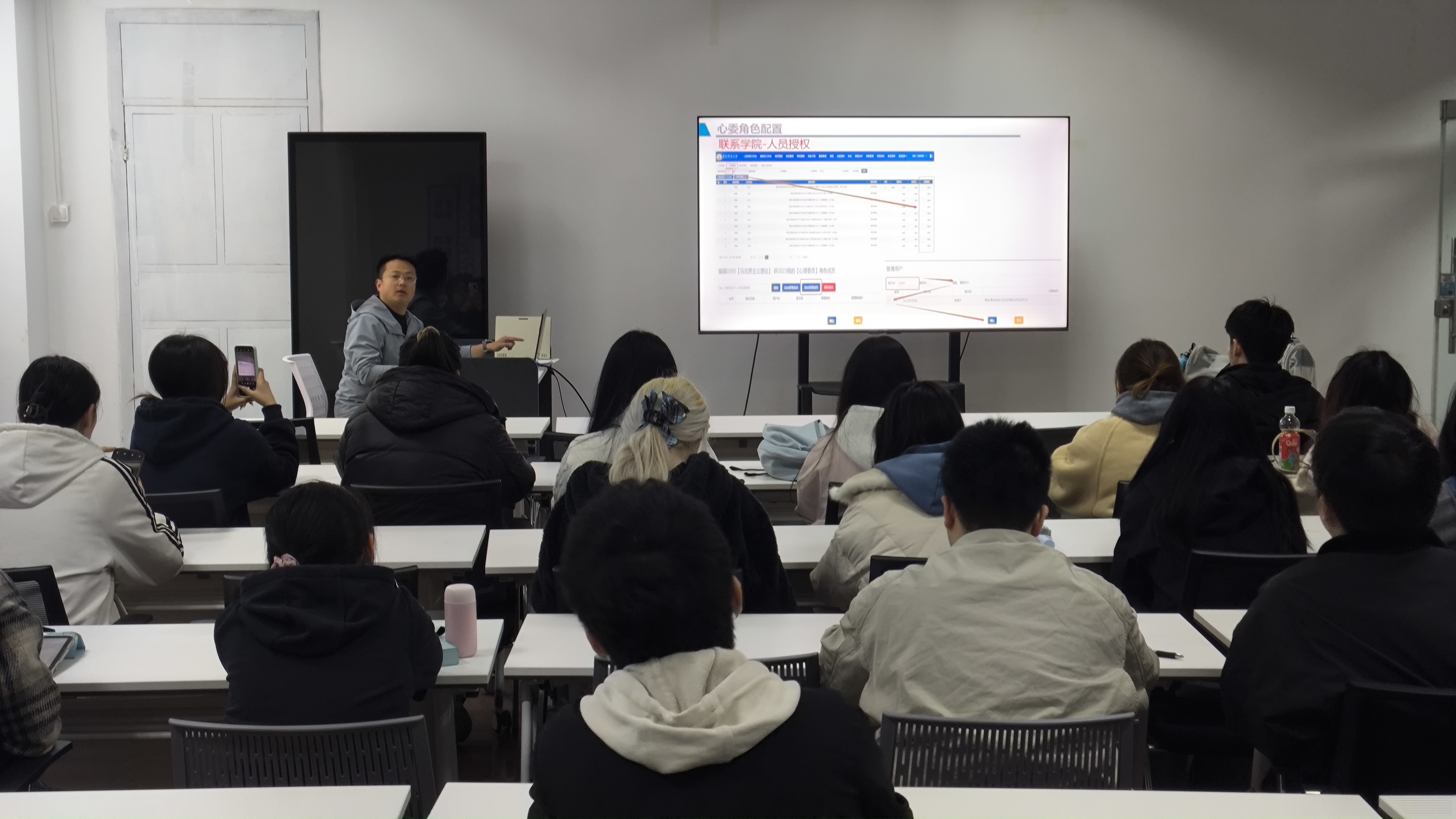 心理工作站站长刘福民进行授课培训。他从心理委员的角色定义切入,明确其作为“班级心灵守护者”“师生沟通连心桥”的核心定位,系统阐释了日常心理监测、心理健康知识宣传、危机信号识别、心理活动组织等核心职责,同时分享了担任心理委员在沟通能力、共情素养、责任担当等方面可能的成长收获,让在场同学深刻认识到岗位的重要价值。刘福民结合真实案例,详细讲解了抑郁症、双相情感障碍等4种大学生常见精神障碍的核心症状与识别方法,引导心理委员学会通过情绪变化、行为表现、社交状态等细节捕捉异常信号。此外,他还重点强调了每月心委月报的规范填写要求,明确数据真实、反馈及时、记录详实的填报原则,并就工作中需恪守的保密原则、边界意识、转介流程等注意事项进行细致说明,帮助心理委员掌握“不诊断、不治疗、重倾听、早干预”的工作准则。