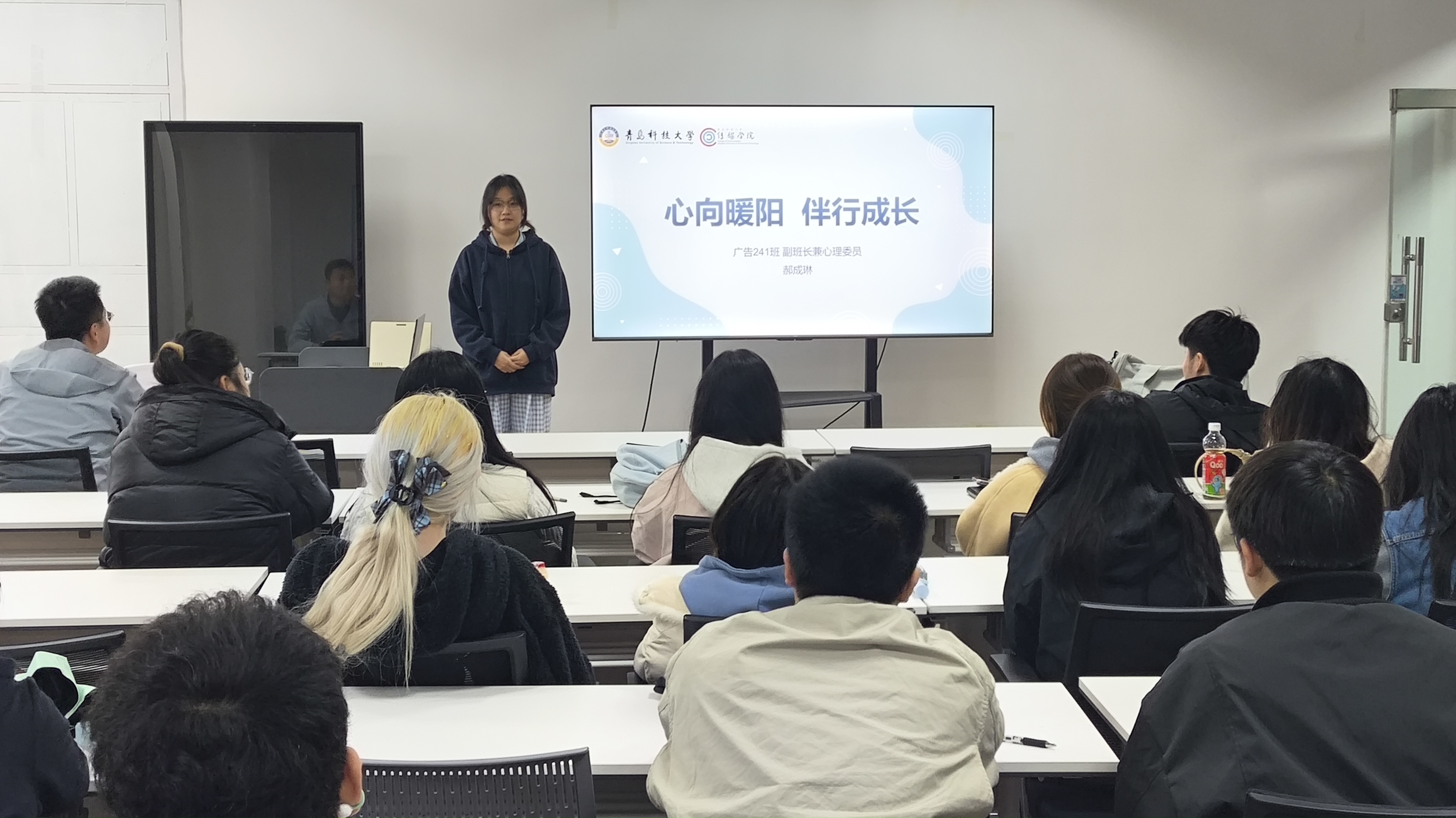 “优秀心理委员”、广告241班郝成琳同学结合自身工作实践,分享了自己打造“班级心晴角”、组织“压力疏导班会”、建立“一对一倾听机制”等特色工作举措,通过具体案例展现了心理委员如何用真诚与专业搭建同学信任的桥梁。她的分享贴近实际、真挚生动,为心理委员们提供了可借鉴的实践范本。